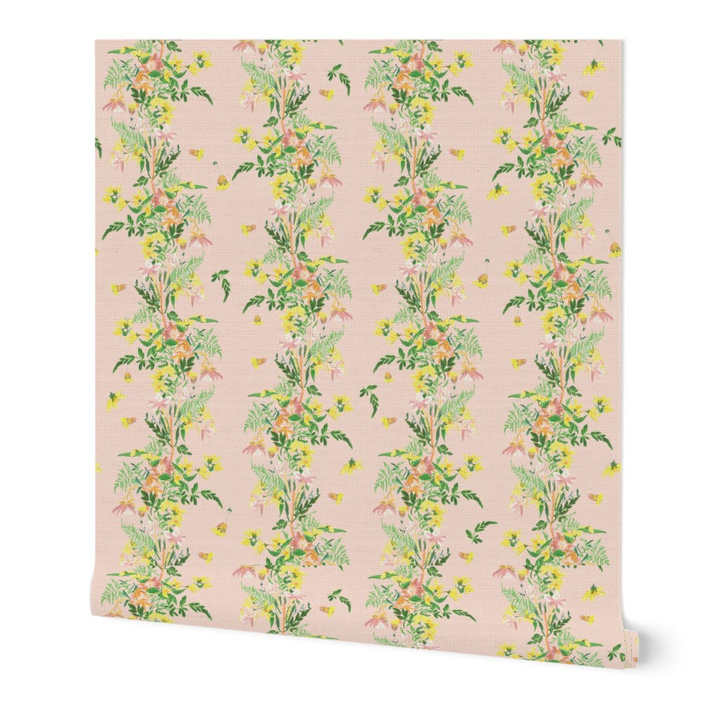 Inspired by natural light flooding into Meander's downtown Charleston design studio, Tumbling Trellis was originally rendered with ink and watercolors on dimpled paper. Our Creative Director drew the pattern from a menagerie of fresh local blooms and pressed flowers collected whilst on holiday in Scotland.